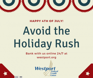 With Independence Day just a few days away, wait times are likely to increase wherever you go. Avoid the holiday rush at Westport Federal Credit Union and take advantage of our online loan payment service. We offer a variety of…